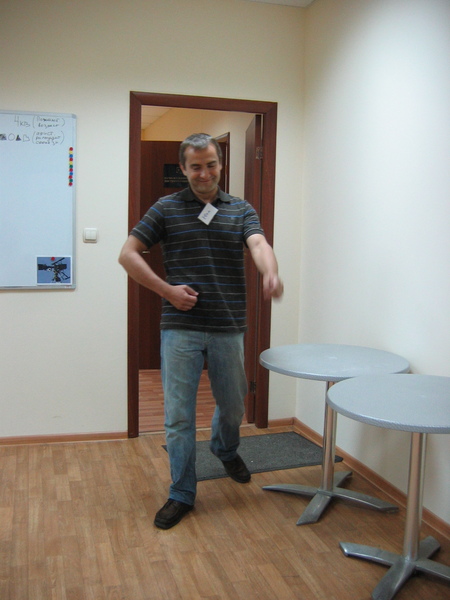 А так проходил маленький тренинг для согреву... Нужно было неповторимой походкой проходить в дверь...